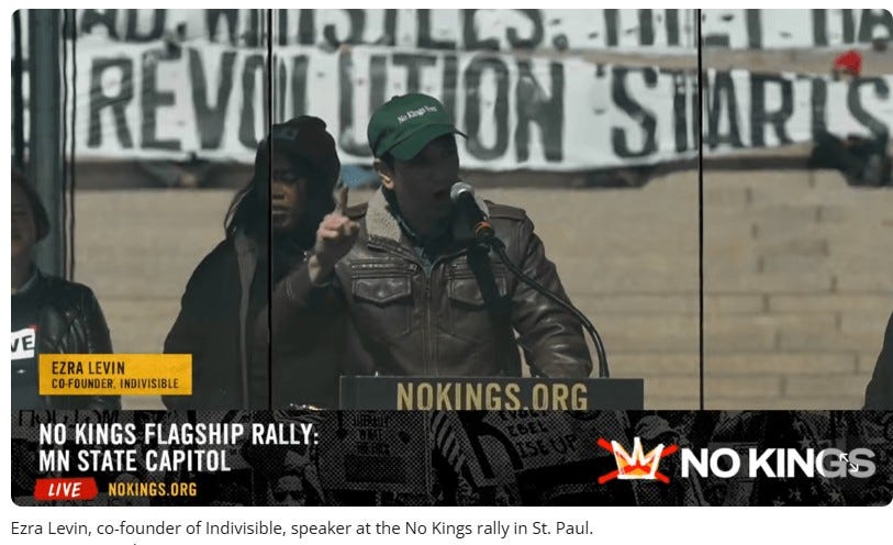 This past weekend, Ezra Levin, co-founder of Indivisible, spoke at the No Kings flagship protest in Minneapolis, and announced the next level of the resistance to a crowd of more than 100,000 people.